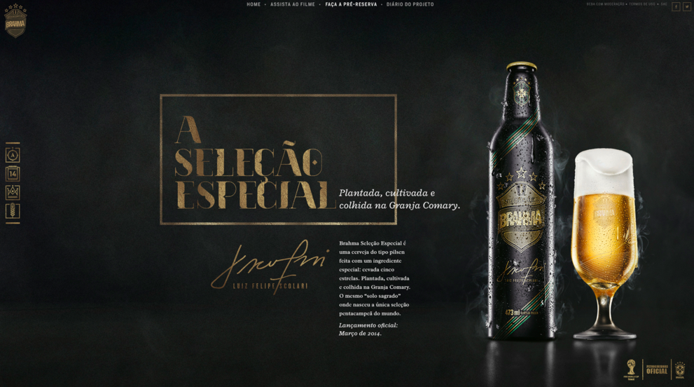 Brahma Seleção Especial website was the hub of the project, where people could witness and follow the barley grown, and intercact with soccer specialists and lots of content from historical moments of our national team.